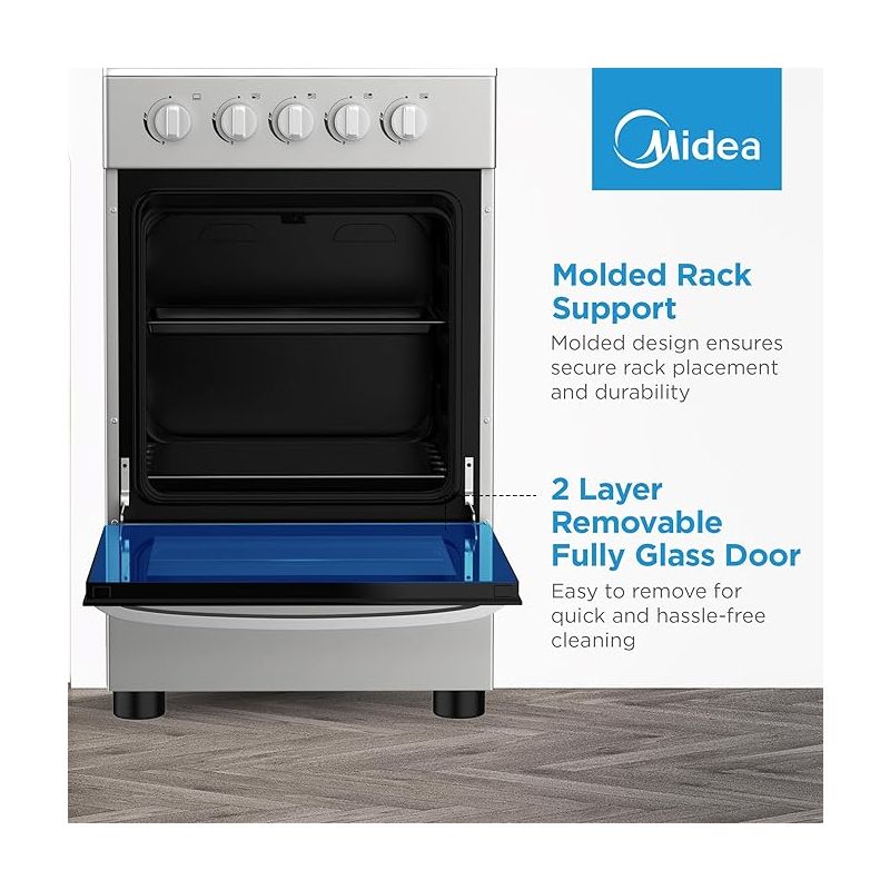 Midea 50x55cm Freestanding Cooker, Full Gas Cooking Range With 4 Burne ...
